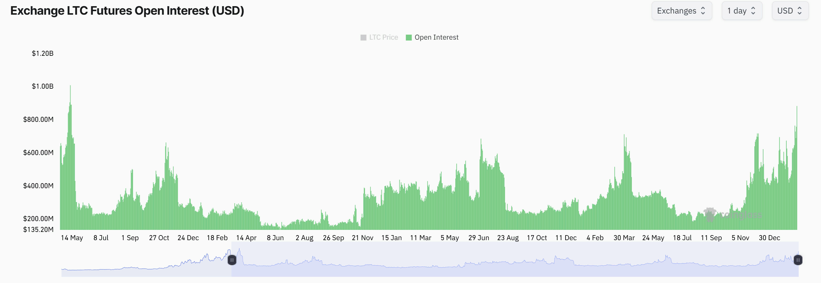 Интерес к LTC-фьючерсам достигает четырехлетнего максимума