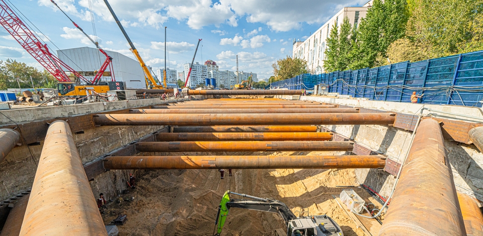 Завершено устройство ограждающей конструкции котлована будущей станции метро «Кленовый бульвар»