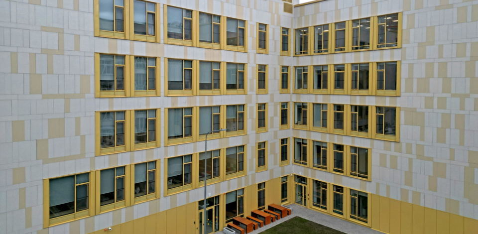 15.04.24 1/38Еще два образовательных объекта построили в районе Аэропорт. Так, трехэтажный учебный корпус для младших классов с дошкольным отделением общей площадью более 6,8 тыс. кв. м расположен на ул. Константина Симонова, д. 3Б. Он рассчитан на 400 мест.