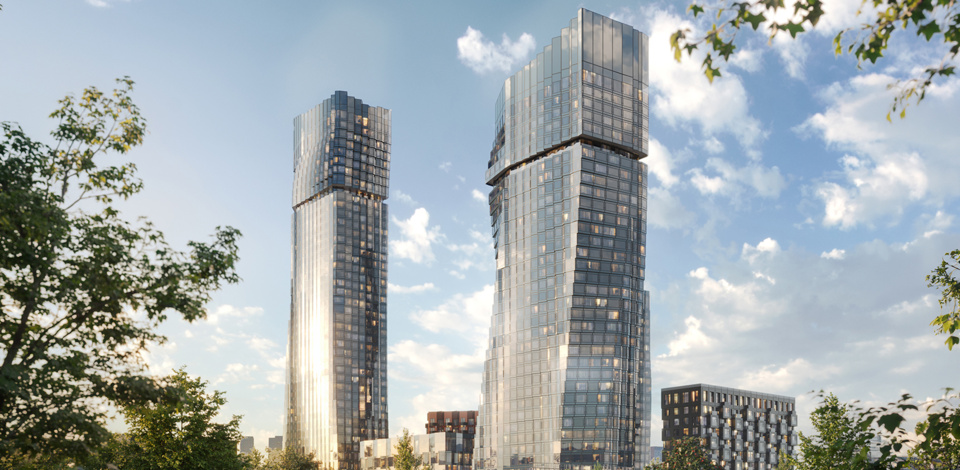 «Появление масштабной высотной застройки с современной архитектурой, активными первыми этажами и общественными пространствами запустит трансформацию территории из периферийной жилой среды в интегрированную часть городского центра, с формированием рабочих мест, изменением социального профиля и появлением новых сценариев городского использования. Фасады нового жилого комплекса решены как комбинация структурного и стоечно-ригельного остекления, стемалита в зонах глухих вставок и композитных кассет на опоясывающих и акцентных элементах. Диагональный параметрический рисунок формирует оригинальный силуэт, а медные и темные панели на низкоэтажных объемах создают сомасштабную человеку среду. Используемые материалы обеспечивают современный высокотехнологичный характер фасадов и устойчивость конструкций к условиям московского климата», — отметил Сергей Кузнецов.