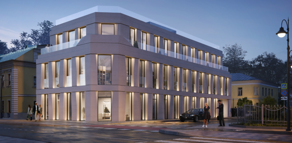 «Первый трехэтажный корпус бизнес-центра решен в сдержанной стилистике, гармонирующей с окружающей средой. Его фасады будут выполнены из стеклофибробетонных плит, что придаст зданию современное звучание без диссонанса с классическими пропорциями соседних строений. Второй корпус высотой в четыре этажа, расположенный в глубине участка, получит более смелое объемно-пространственное решение. Здесь используют игру разнонаправленных плоскостей и текстуру натурального камня молочного цвета. В отделке проектом запланировано создание вентилируемых фасадов с облицовкой из камня, а также витражное остекление с металлическим профилем», — добавил министр правительства Москвы, руководитель Департамента градостроительной политики столицы Владислав Овчинский.