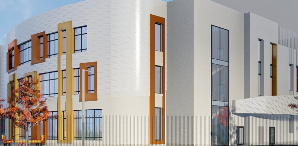 Внешний облик объекта будет отличаться уникальным объемным фасадом, который выполнят в белых тонах с желтыми и оранжевыми вставками в обрамлении окон. Современное архитектурное решение позволит гармонично интегрировать его в жилую застройку района.