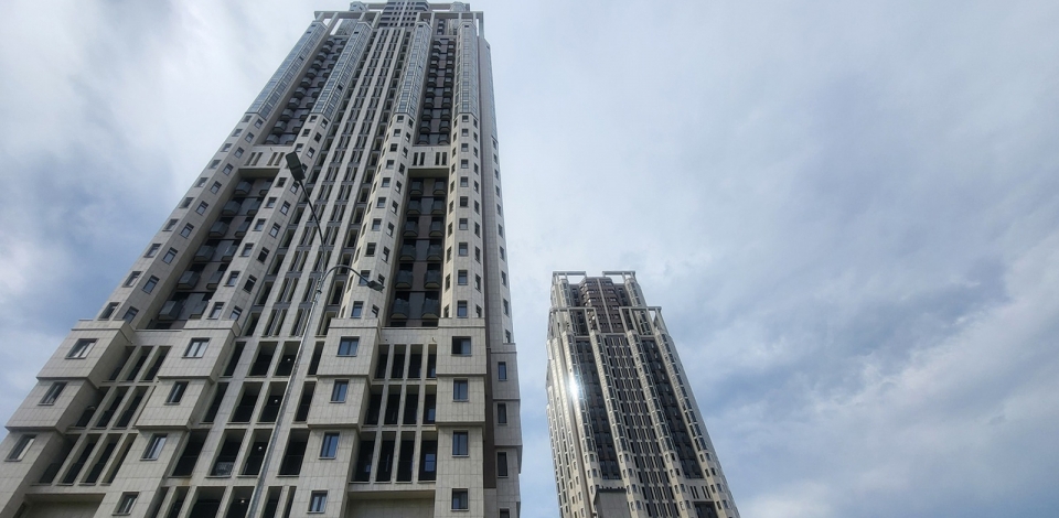 В трех корпусах-башнях, объединенных стилобатом, предусмотрено 718 квартир. Общая площадь жилого комплекса превышает 200 тыс. кв. м. Квартиры в нем ожидают 243 дольщика.