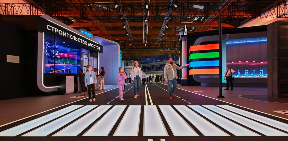 08.08.25 1/40Одной из важных зон выставки стала инсталляция «Путь сквозь промзону», где посетители могут совершить виртуальное путешествие из заброшенных промышленных территорий в новые современные районы. Поднявшись на лифте, они увидят превращение депрессивных промзон в пространства для жизни, работы и отдыха.