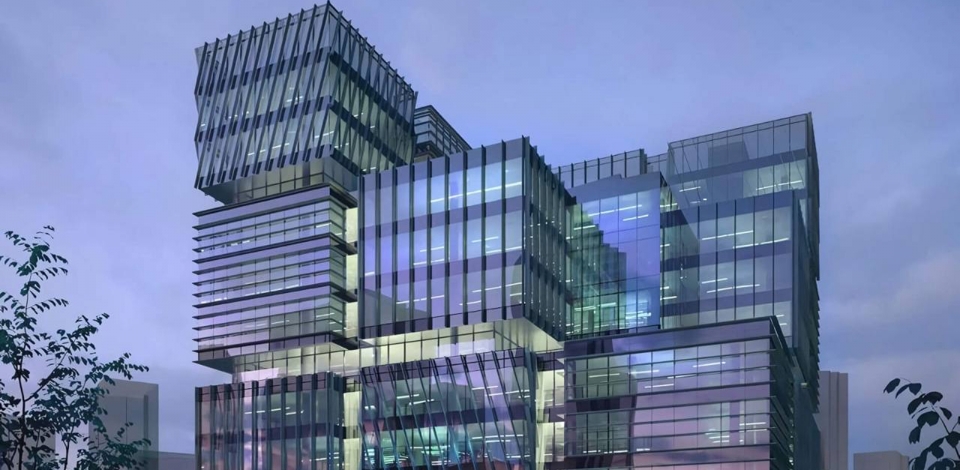 Начался монтаж фасадов будущего бизнес-центра в районе Хорошёвский
