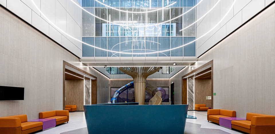 «Одна из главных особенностей объекта — три стеклянных атриума высотой более 30 метров, создающих светлое и открытое пространство. Внутри оборудовали все с учетом медицинской логистики, благодаря чему диагностические и лечебные процедуры будут проводиться под одной крышей, а пациентам не придется перемещаться между корпусами. На крыше разместили вертолетную площадку, позволяющую доставлять экстренных пациентов», — отметил Алексей Александров.