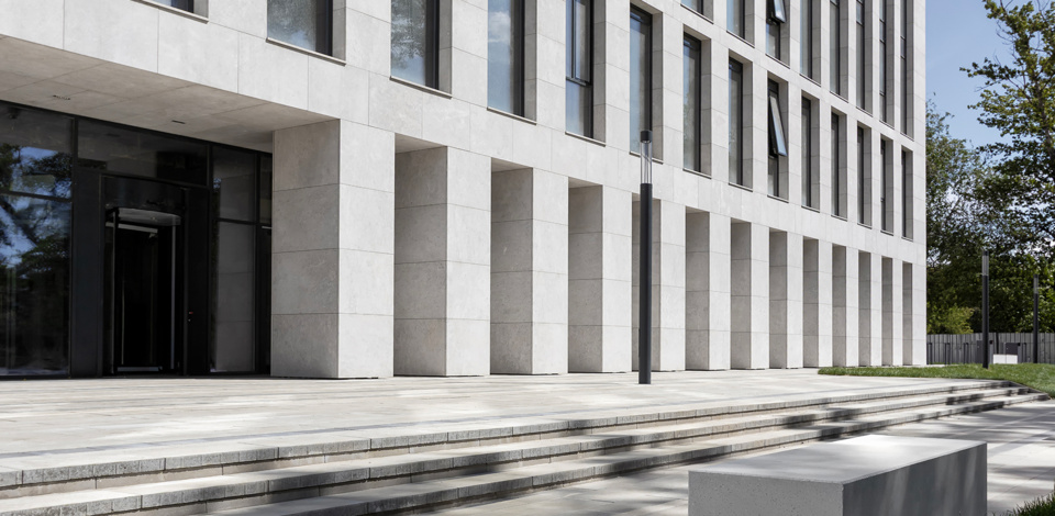 «Фасад здания облицован натуральным камнем. Первый этаж заглублен со стороны Костомаровского переулка, благодаря чему образуется пешеходная анфилада по направлению к набережной Яузы. Дополнительный акцент облику бизнес-центра придает балкон на уровне восьмого этажа. Застройщик выполнил комплексное благоустройство территории с формированием мест отдыха и прогулочных зон», — отметил министр правительства Москвы, руководитель Департамента градостроительной политики Владислав Овчинский.