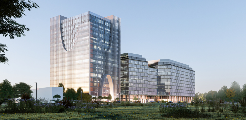 Стеклянная башня со сквозной аркой украсит бизнес-центр в Мнёвниковской пойме