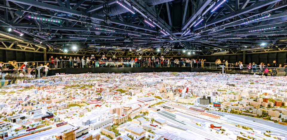 Интерактивные камеры и сенсорные экраны по периметру макета дают возможность детально рассмотреть каждое здание, а 40-кратное увеличение позволяет получить доступ к мельчайшим деталям.