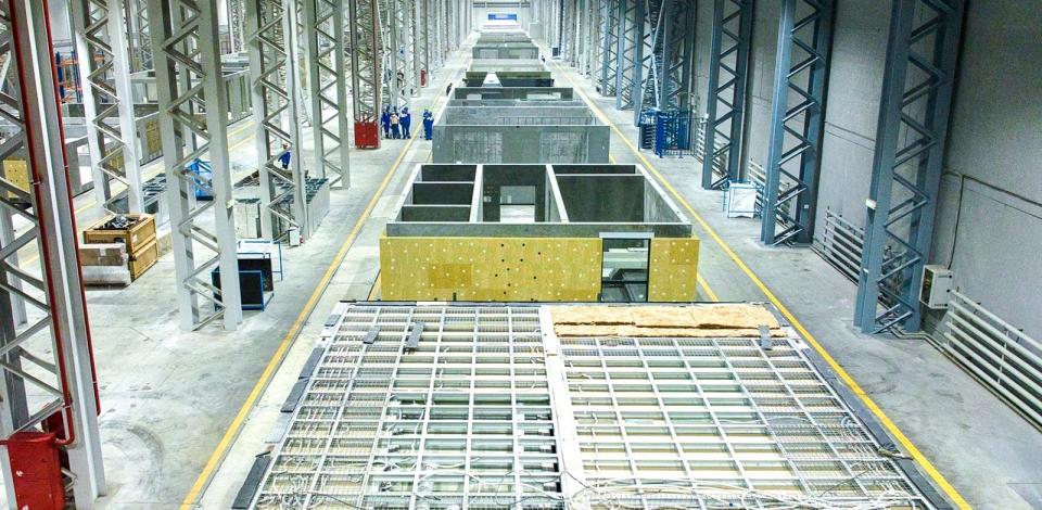 В июле 2023-го была сдана в эксплуатацию первая очередь — экспериментальный завод площадью 26,6 тыс. кв. м и мощностью до 100 тыс. кв. м — 1 тыс. штук жилых крупногабаритных модулей в год.