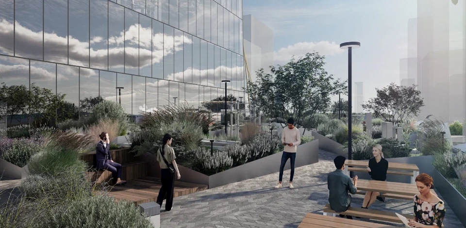 «На первом этаже стилобатной части бизнес-центра “Репорт” будут находиться торговые площади и ресторан. Для резидентов создадут благоустроенное общественное пространство с террасой на стилобате площадью около 1,1 тысячи квадратных метров. Эта продуманная территория для отдыха и взаимодействия разделена на несколько функциональных зон: активную с гимнастическим комплексом, качелями и шезлонгами, диалог-пространство для проведения мероприятий со встроенным экраном и комфортную среду с обеденными зонами, скамейками с USB-зарядками и полным Wi-Fi-покрытием», — добавил министр правительства Москвы, руководитель Департамента градостроительной политики столицы Владислав Овчинский.