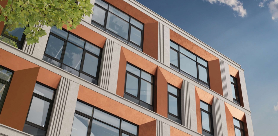 Современный архитектурный облик музыкальной школы гармонично впишется в окружающую застройку. Ее фасад украсят алюминиевыми панелями с УФ-печатью под медь, а декоративные элементы выполнят из стеклофибробетона. Снаружи первый этаж, выходящий на улицы Сущевскую и Палиха, будет облицован светло-серым гранитом. Также в конструкции будет использована оцинкованная сталь с полимерным покрытием.