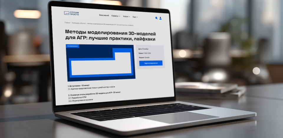 3D-модель для АГР — это цифровое трехмерное представление строительного проекта, необходимое для его дальнейшего согласования. Тематические образовательные мероприятия помогают грамотно подготовить 3D-модель объекта, что сокращает количество отказов по утверждению архитектурной документации.