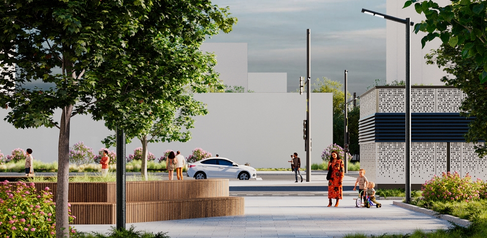 Концепция благоустройства территории около станции «Народное Ополчение» Рублёво-Архангельской линии метро. Источник: АО «Мосинжпроект»