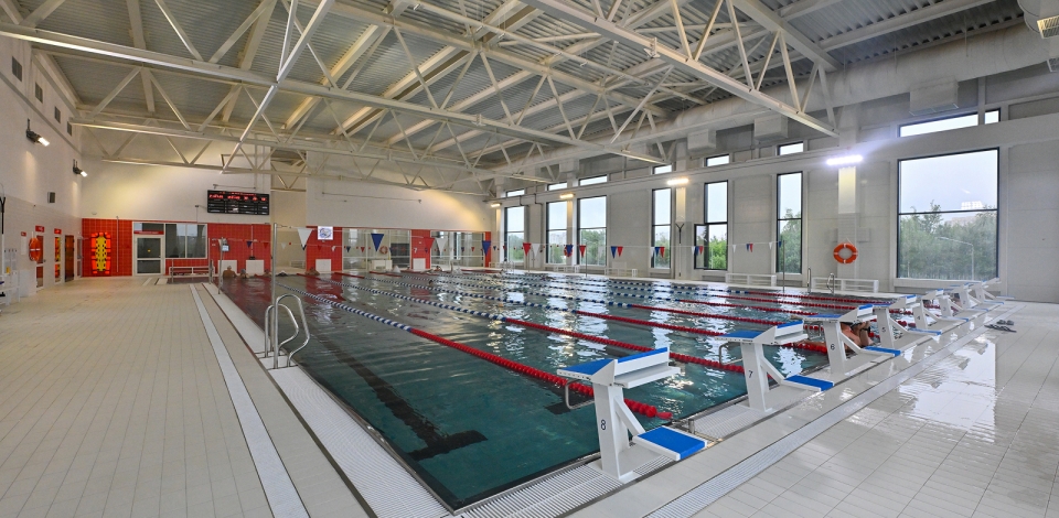 «В четырехэтажном спорткомплексе круглый год будут работать шесть бассейнов. Так, здесь появится бассейн для прыжков в воду, его оснастят вышками высотой до 10 метров и трамплинами до трех метров. В здании также разместят большой бассейн для водного поло и спортивного плавания на дистанции 50 метров со встроенной передвижной платформой для разделения бассейна на две части и подъемным дном. Кроме того, здесь появится бассейн для оздоровительного плавания длиной 25 метров. Для болельщиков и зрителей оборудуют трибуны вместимостью до 700 мест. Еще здесь предусмотрят бассейны для обучения плаванию юных москвичей: два будут предназначены для детей в возрасте до семи лет, один — от семи до 10 лет», — рассказал руководитель Департамента гражданского строительства города Москвы Алексей Александров.