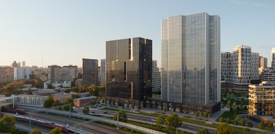 «Бизнес-центр общей площадью порядка 92 тысяч квадратных метров включает в себя две офисные башни в 18 и 23 этажа. Максимальная высота одной из них составит 100 метров. Корпуса будут композиционно смещены относительно друг друга и объединены на уровне первых этажей двухуровневым стилобатом из кирпича темного оттенка. Фасад одной башни будет отделан металлическими ламелями черного цвета, а более высокого здания — белыми», — отметил Владислав Овчинский.